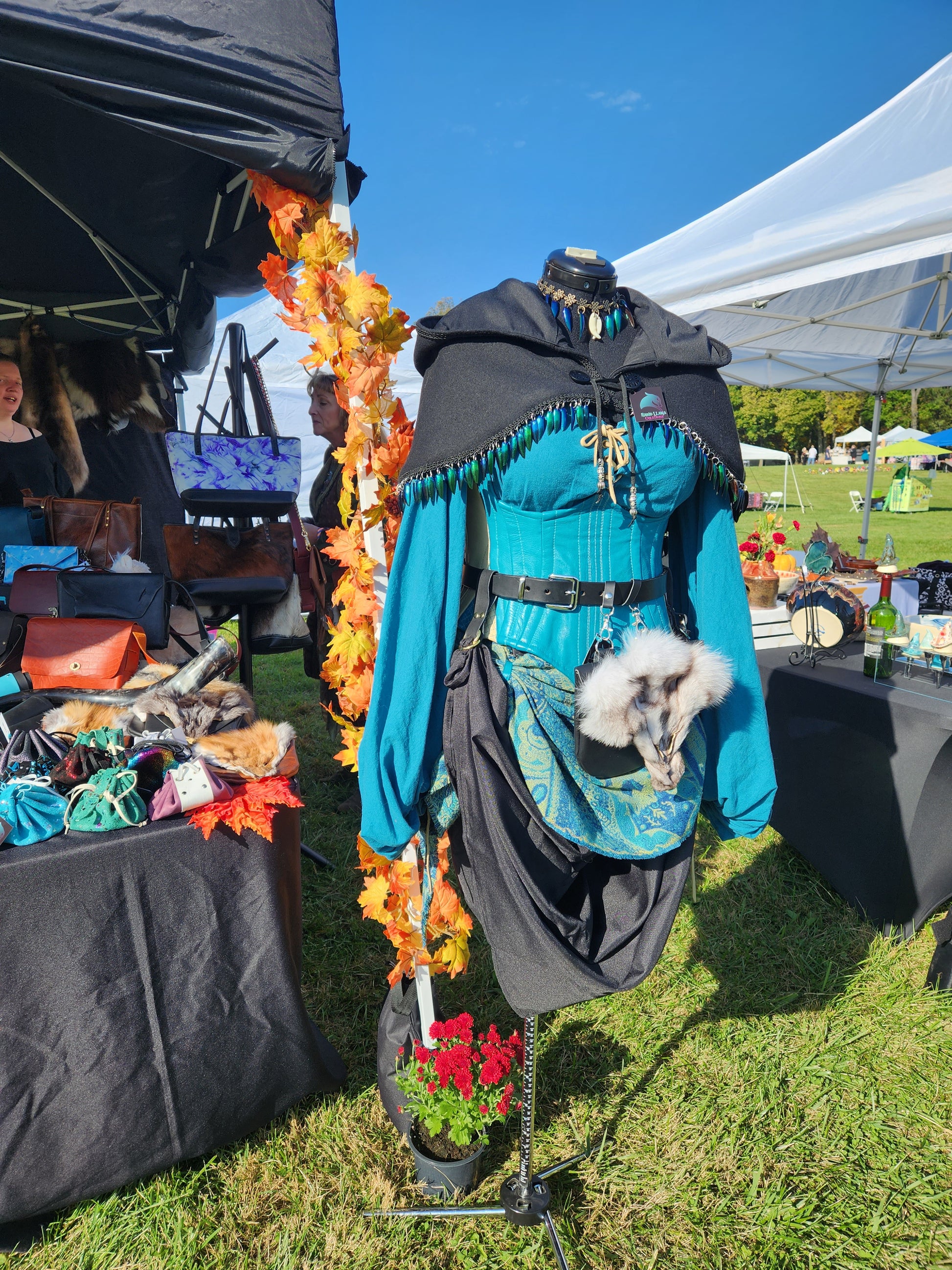 To attach, slide the loop through your belt. Then, bring up a fold of fabric and pull it through both rings, and down one ring to secure. Use one skirt hike for an asymmetrical design, or two to hike up both sides. Perfect for rainy or muddy shows, or just to show off your layers of color!
