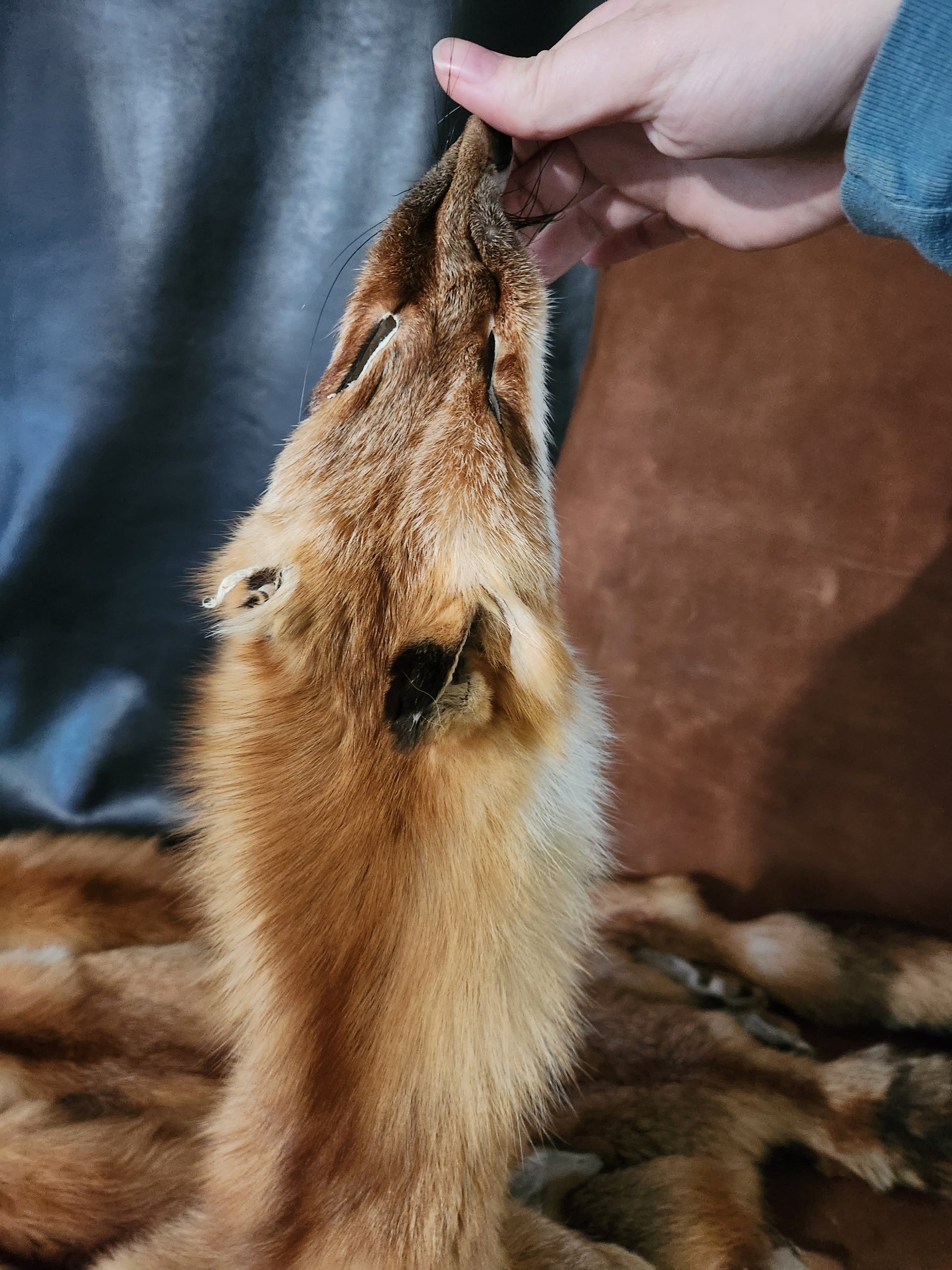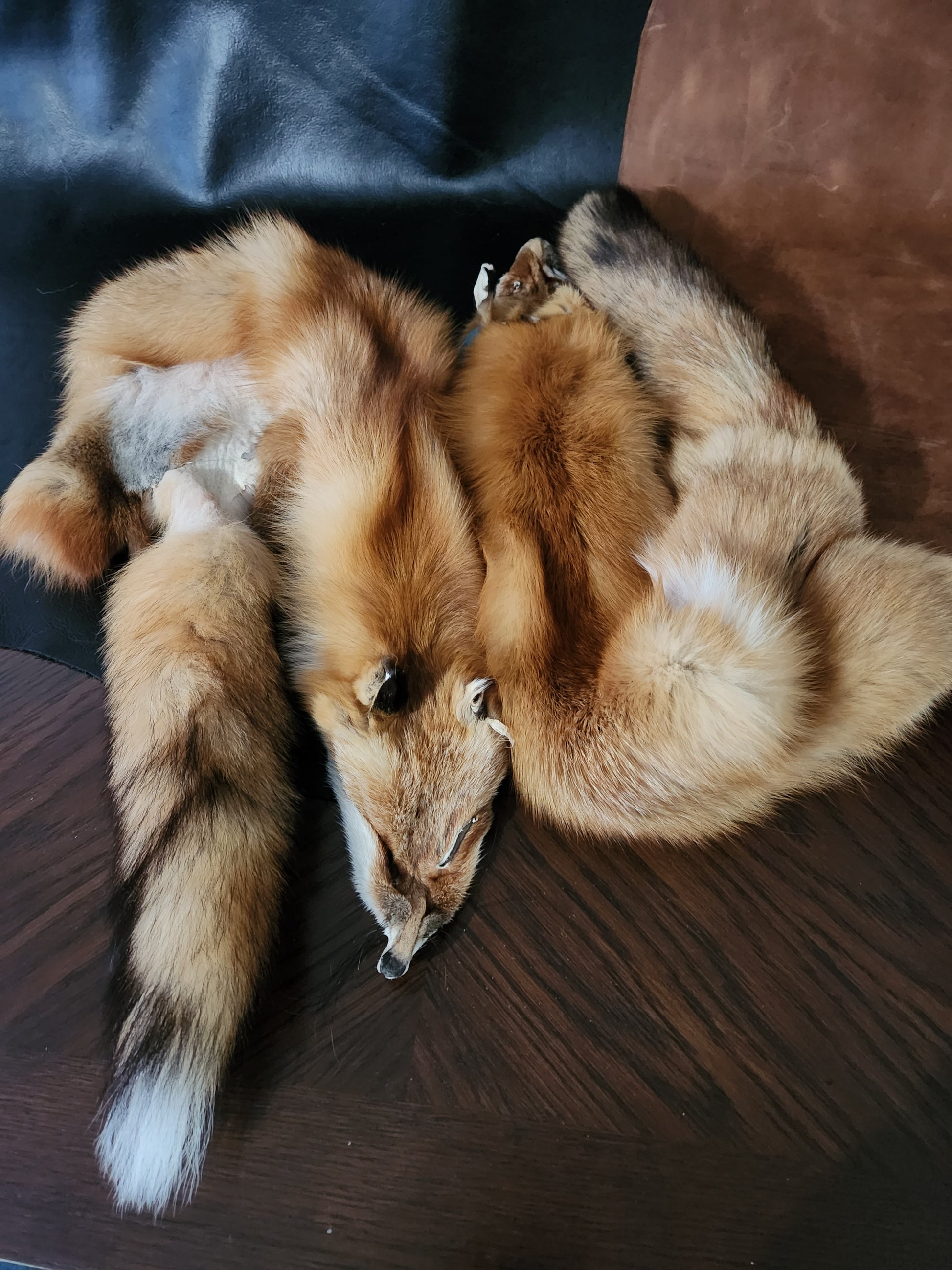 These beautiful foxes average 46"-48" in length from nose to tail-tip. All of them have faces and tails, but none have legs or paws. They are all case-skinned, and have variations of red and brown. The fur is super soft and silky! This is a bulk lot; if you would like to choose individual hides, please message me and I will gladly send you pictures of each.