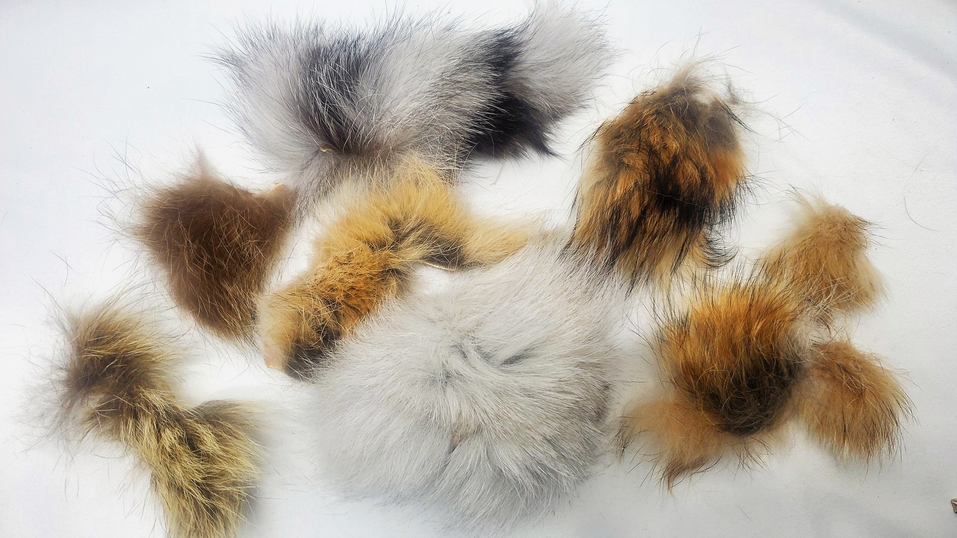A 6" x 8" bag stuffed to bursting with small fur scraps from various projects. Pieces will be various sizes such as the examples shown, with options of single-type fur or various furs. Selection may vary based on what we've been working on recently. These small scraps are good for patching projects, trim on cuffs, fly tying, or just for sensory.