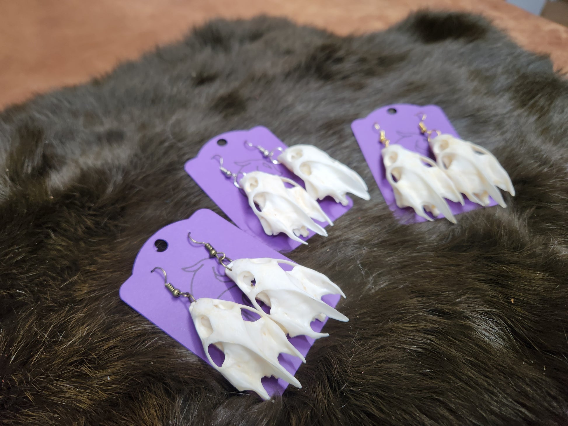 These cute little earrings are made from real turtle skulls. Finished on a hypoallergenic ear wire, they are lightweight and easy for all-day wear. As these are real skulls, there may be slight variance in size and color. Choose your finding color.